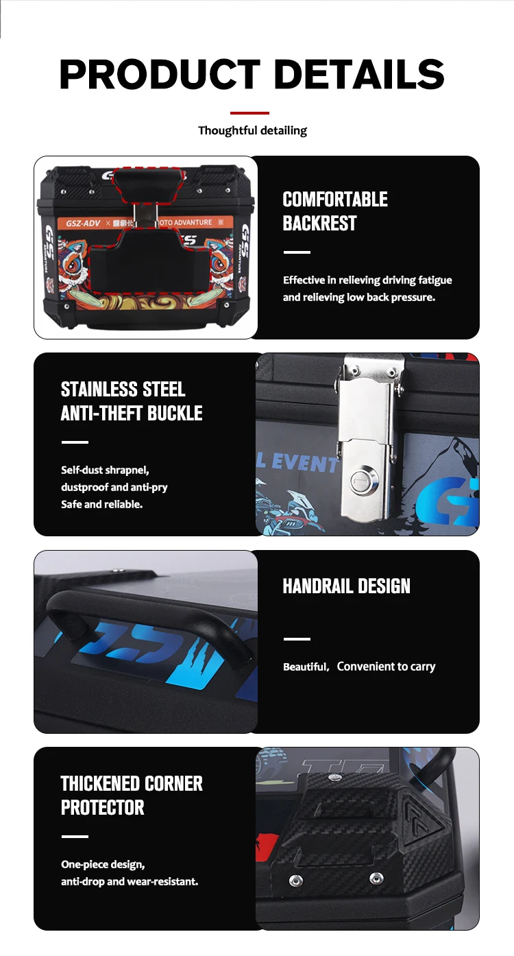 45L Motorcycle Tail Box Universal For R1200GS R1250GS F800GS F850GS G310gs F750gs Large Capacity Top Rear Luggage Tool Tail Box