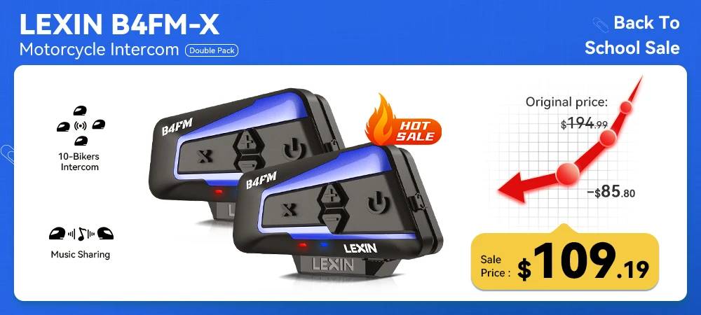 LEXIN B4FM-X Motorcycle Bluetooth V5.0 Intercom Helmet Headset for 10 Bikers Talking at one time with Music Sharing&Type-C charging