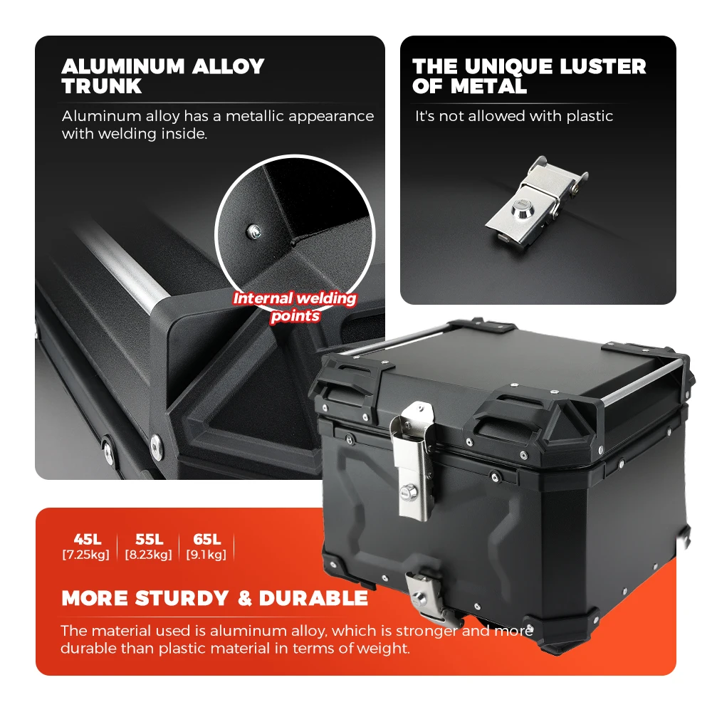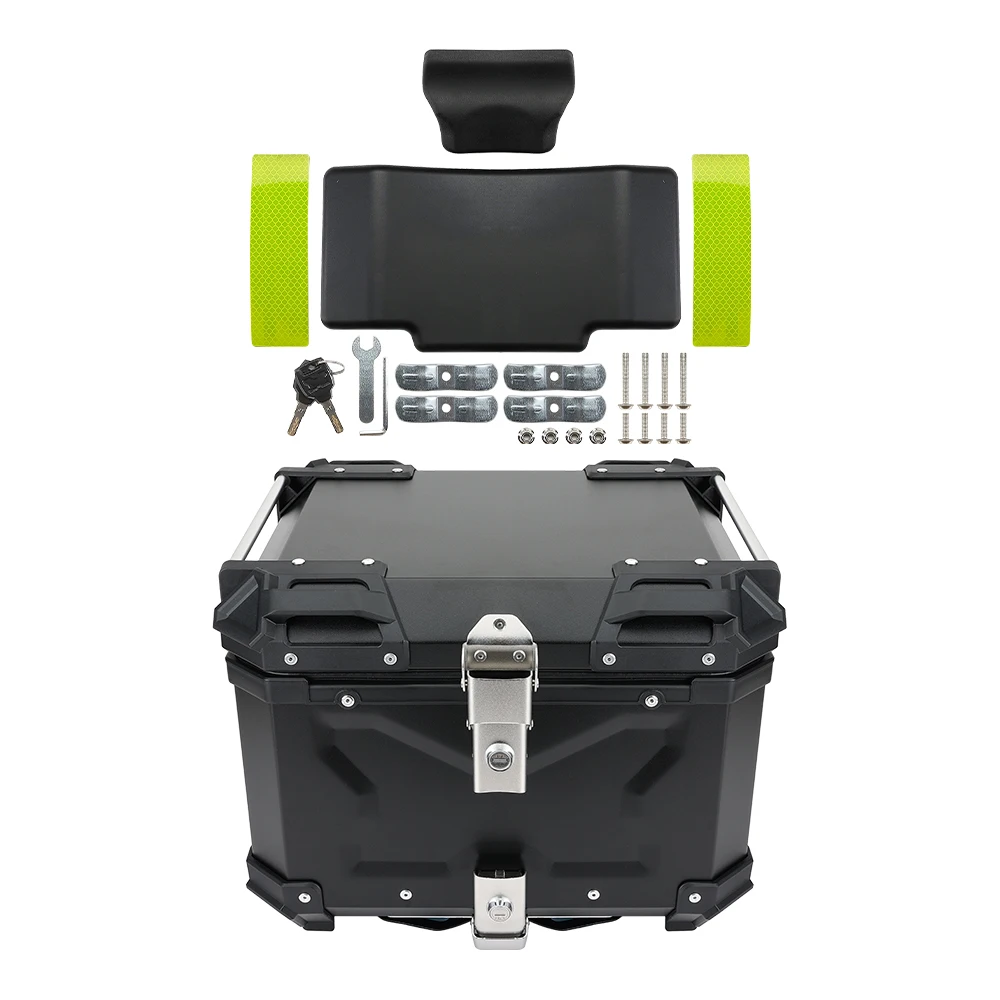 45L/55L/65L Universal Aluminum Alloy Top Case Motorcycle Tail Box Trunk Luggage Storage Hard Case Rear Rack Lockable Waterproof and Anti-Collision for Motorcycle and Scooter