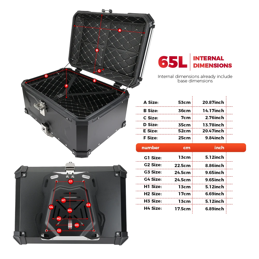 ▲Universal Fitting Details: These Top Boxes have a universal attachment set-up which allows it to be fitted to most motorcycles and large scooters and mopeds.Such as: For BMW R1200GS/R1250GS/F800GS...For For Honda Africa Twin CRF 1000L /NC700/750...For Triumph For Ducati For Kawasaki ...