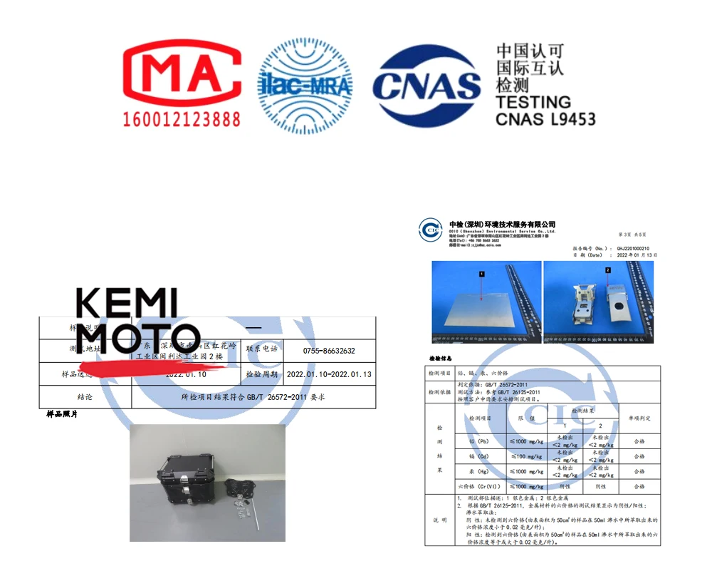 KEMIMOTO Tail Box complies with Safety Requirements approvals of CNAS and ILAC-MRA for legal importing & legal selling. we have complete corresponding export documents,
